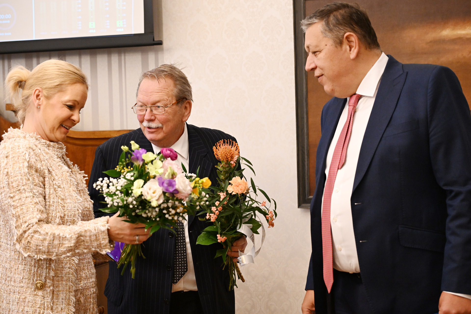 Ľ. Andrassy, predseda NKÚ SR, F. Bednařík, riaditel VÚ Canasan z Českej republiky, a P. Prokopovič,